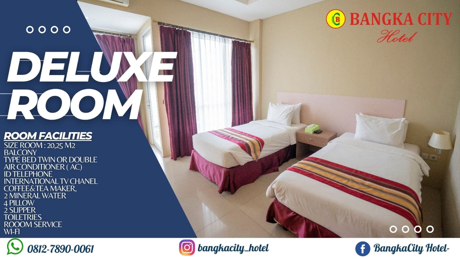 Menginap di Bangka City Hotel tidak hanya memberikan kemudahan untuk menjelajahi tujuan petualangan Anda, tetapi juga menawarkan kenyamanan untuk istirahat Anda. Bangka City Hotel adalah hotel yang direkomendasikan untuk Anda, seorang backpacker yang tidak hanya memprioritaskan anggaran, tetapi juga kenyamanan saat beristirahat setelah petualangan sehari penuh. Bagi Anda yang menginginkan pelayanan berkualitas baik dan menikmati sarapan khas Bangka dengan harga terjangkau, Bangka City Hotel adalah pilihan yang tepat. Karena selain murah, akomodasi ini menyediakan fasilitas dan layanan yang memadai yang menjaga kualitasnya. Hotel ini adalah pilihan yang tepat untuk Anda dan pasangan Anda yang ingin menikmati liburan romantis. Dapatkan pengalaman yang tak terlupakan bersama pasangan Anda dengan menginap di Bangka City Hotel. Bangka City Hotel memiliki semua fasilitas pendukung bisnis untuk Anda dan kolega Anda. Bangka City Hotel adalah pilihan cerdas bagi mereka yang ingin menginap di hotel dengan harga terjangkau, tetapi tetap memberikan pelayanan yang baik. resepsionis siap 24 jam untuk melayani check-in, check-out, dan kebutuhan lainnya. Jangan ragu untuk menghubungi kami, kami siap melayani Anda. Ada restoran yang menyajikan menu lezat dari la Bangka City Hotel dan spesial untuk Anda. Wifi tersedia di semua area umum properti untuk membantu Anda tetap terhubung dengan keluarga dan teman. Bangka City Hotel adalah akomodasi dengan fasilitas yang baik dan kualitas layanan yang memuaskan menurut sebagian besar tamu. Bangka City Hotel adalah pilihan yang tepat bagi Anda yang mengutamakan kenyamanan beristirahat dengan harga yang rendah dan spesial